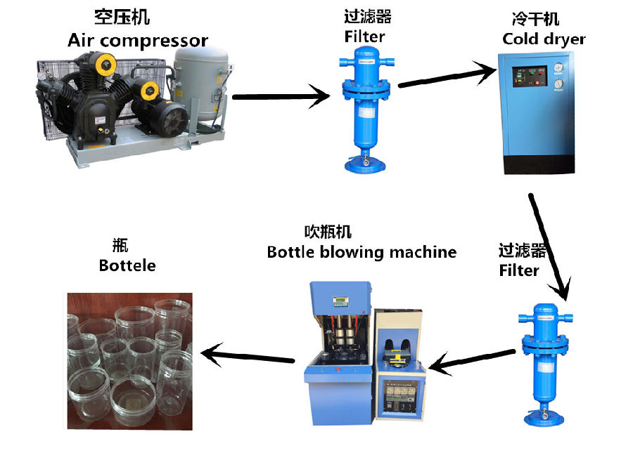 | 空壓機(jī) | 15KW | ≥3.0/3.0 | 空氣冷凍干燥機(jī) | 3.0 M pa | ≥3.0/3.0 | 空氣精密過濾器 | 3.0 M pa | ≥3.0/3.0 | 主機(jī)電力 | 功率 | KW | 10 | 電壓/頻率(三相) | V/HZ | 380/50-60 | 工作氣壓 | M pa | 0.8-1.0 | 吹瓶氣壓 | M pa | 2.0-3.0 | 尺寸 | 主機(jī)尺寸 | MM | 1980*700*1680 | 加熱器尺寸 the heater size | MM | 2170*585*1360 | 重量 | 主機(jī)重量 | KG | 800 | 加熱器重量 | KG | 300 | 注:因本公司設(shè)備不斷更新,具體參數(shù)以設(shè)備為準(zhǔn)! |